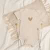 O body perfeito para o dia a dia do teu bebé! Feito em 100% algodão orgânico certificado, é suave e delicado para a pele do teu mini. O coração bordado dá-lhe aquele toque especial e tem a gola em envelope e botões de pressão sem níquel, é prático para as trocas e confortável para todas as aventuras. É o essencial que combina fofura, conforto e sustentabilidade num só!