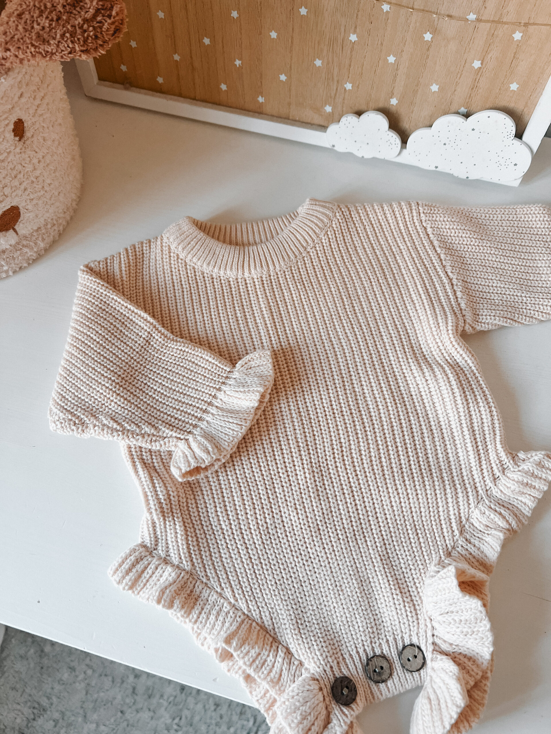 Fofo Cozy Ruffles – Fofo de Malha para Bebé com Folhos